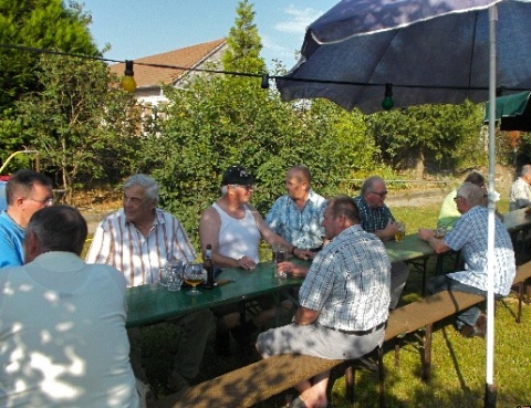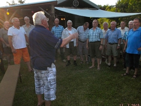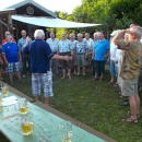 Am 17. Juli trafen sich die Männer des Gesangvereins Liederkranz zur letzten Singstunde vor der Sommerpause im Garten des aktiven Sängers Rolf Speck. Auch wenn die Temperatur in diesem Jahr besonders hoch war, ließ es sich dennoch in der freien Natur herrlich singen. Unter der Leitung unseres Vizedirigenten Werner Maier wurden in froher Runde und frischer Luft einige Lieder zum Besten gegeben. Beim gemütlichen Zusammensitzen, gutem Essen und zünftigen Kartenspiel wurde bei dem warmen Wetter das kühle und frisch gezapfte Bier ganz besonders genossen.
