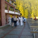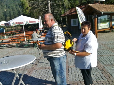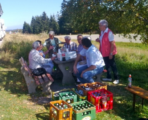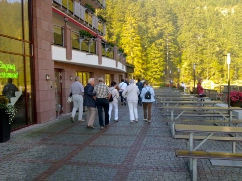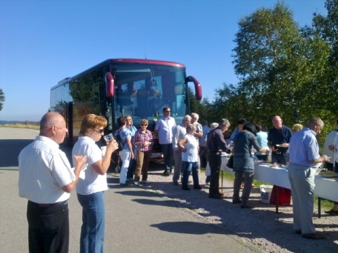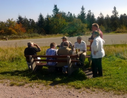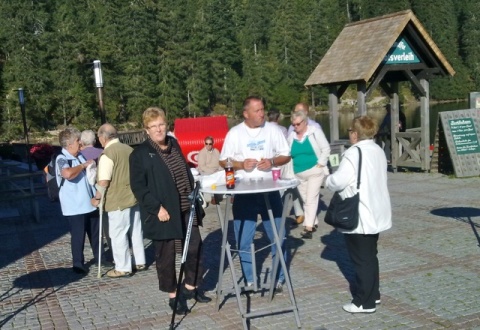 Bei strahlendem Wetter führten wir am Samstag den 1. Oktober einen Eintagesausflug in den nördlichen Schwarzwald durch. Pünktlich um 8:00 Uhr startete unser Fahrer Uli den vollbesetzten Bus der Fa. Trischan und brachte uns sicher über die Schwarzwald-Hochstraße zum Mummelsee. Hier nutzte man die Gelegenheit zu einem kleinen Bummel oder zur Seefahrt mit dem Tretboot in der klaren Schwarzwaldluft. Am Schliffkopf wurde dann mit einer zünftigen Frühstücksvesper aus der Bordküche Kraft für die kommenden Stunden getankt. Danach ging die Fahrt weiter nach Freudenstadt. Eine aufschlussreiche Stadtführung brachte uns dieses hübsche Schwarzwaldstädtchen bekannt für den größten Marktplatz Deutschlands mit seinen Arkaden und den 50 Wasserfontänenäher. Beeindruckend war auch die zum Entedankfest schön geschmückte Pfarrkirche, die leider aufgrund der Zerstörung im Krieg nur noch ein gotisches Kruzifix sowie den romanischen Taufstein und das romanische Lesepult von der ursprünglichen Innenausstattung besitzt.
