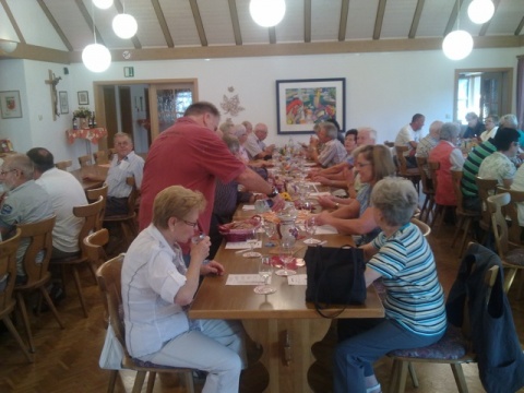 Am Nachmittag brachen wir dann zur nächsten Station in das Rotweindorf Kappelrodeck auf. In der Winzergenossenschaft Waldulm nahmen wir an einer interessanten Kellereiführung teil und beobachteten die Einbringung des neuen Leseguts mit zum Teil über 100° Oechsle Mostgewicht. Das lässt einen guten Jahrgang 2011 erwarten. Bei der sich anschließenden Weinprobe erklangen natürlich auch fröhliche Weinlieder.