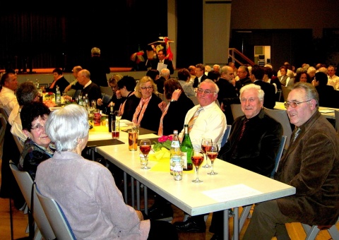 Danach dirigierte Georg Hepp zum letzten Mal als aktiver Dirigent des Gesangvereins Liederkranz seinen Männerchor mit einem Block von ihm besonders geliebten Volksliedern “Der Betrogene“ (Bernhard Weber), “Rheinisches Fuhrmannslied“ (Paul Zoll) und “Liebeslied für Lu“ (Wilhelm Heinrichs).