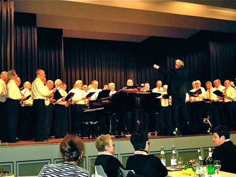 Zum Abschluss des konzertanten Teils der Feier trat der Frauen- und Männerchor gemeinsam auf mit dem Lied "Zigeunerleben" von Robert Schumann begleitet am Flügel von Kurt Weiler und hinterließ einen nachhaltigen Eindruck bei den Zuhörern.