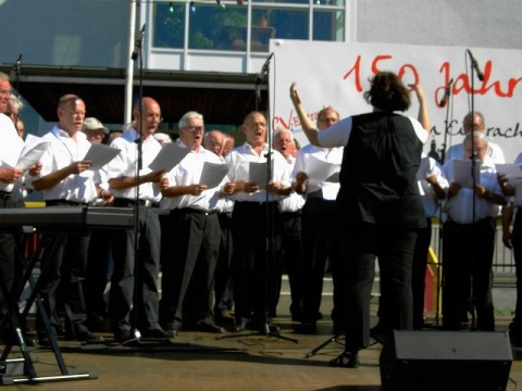 Am Sonntag, den 26. Juni trat der GV Liederkranz anlässlich des 150-jährigen Jubiläums des GV Eintracht Neuburg sowohl mit seinem Frauenchor und seinem Männerchor als auch dem gemeinsamen Chor auf.