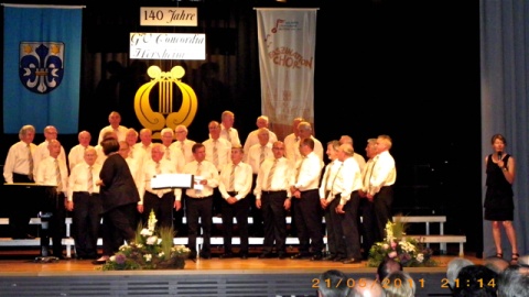 Am Samstag, den 21. Mai, wirkte der Gesangverein Liederkranz beim Konzert der Concordia Herxheim anlässlich ihres 140 jährigen Bestehens mit. Während die Männer als einziger Männerchor dem Jubilar gratulierte, bildeten die Frauen gemeinsam mit den Sängerinnen der Concordia einen stattlichen Frauenchor.